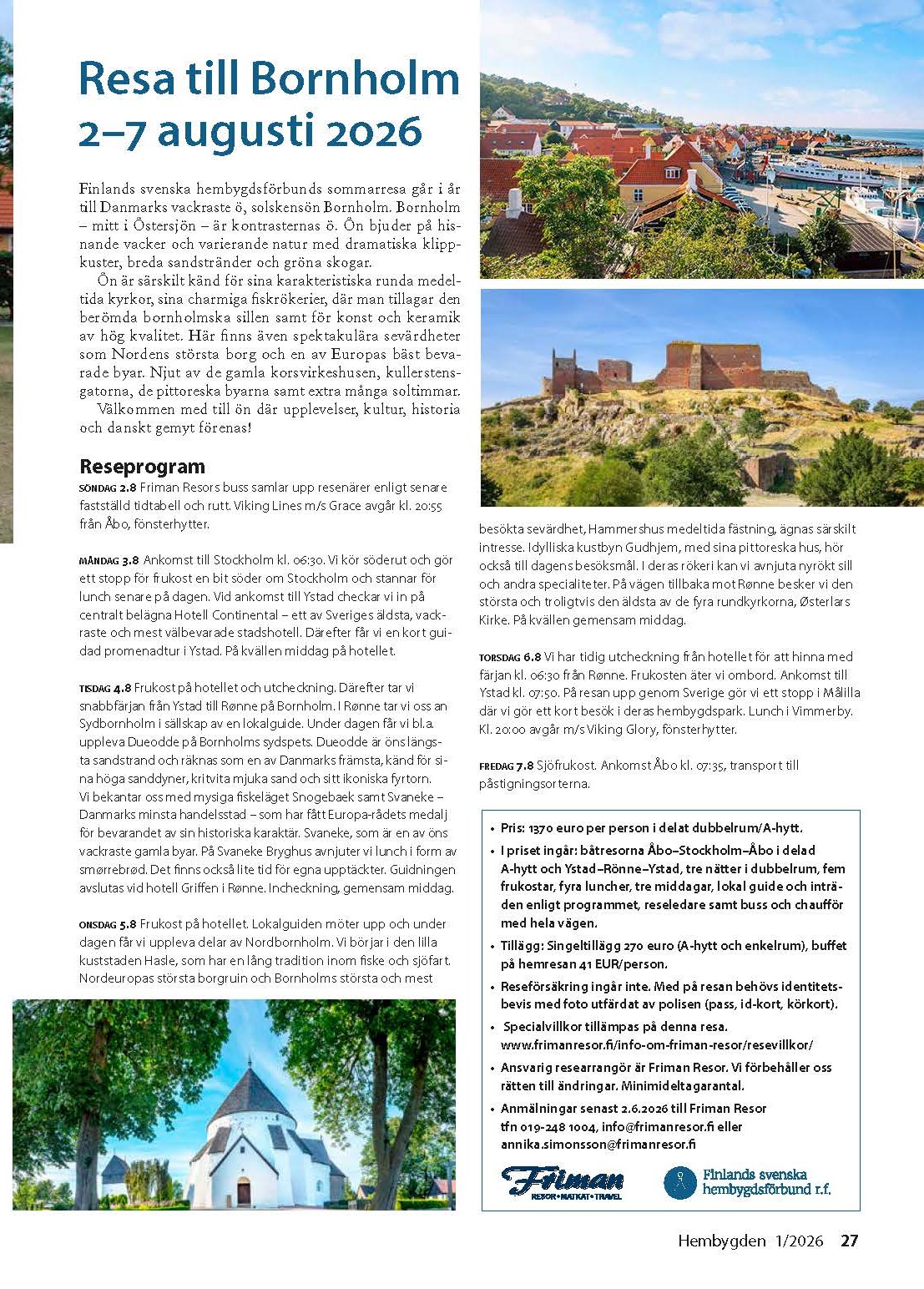 Anmälningar senast 2.6.2026 till Friman Resor tfn 019-248 1004, info@frimanresor.fi eller annika.simonsson@frimanresor.fi